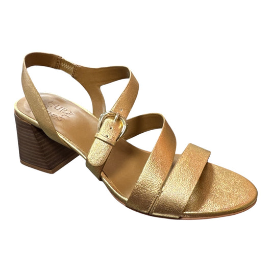 NATURALIZER METALLIC GOLD LEATHER STRAPPY BLOCK HEEL SANDALS
