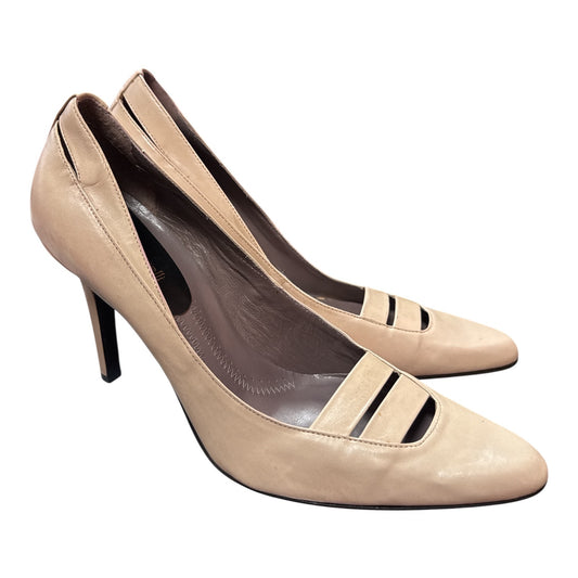 PAOLO CORELLI NUDE LEATHER OPEN TOE CUTOUT PUMPS